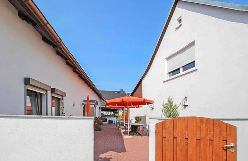 Access to the approx. 30 square metre, centrally heated, non-smoking flat is via a private courtyard entrance. The cosy, furnished courtyard with barbecue is available to all guests. In addition, there are two carport parking spaces (also with their own entrance and gate), further parking spaces and bicycle storage facilities. The flat for two people is on the first floor and has a living room with flat screen TV and kitchenette (electric hob/oven, fridge with freezer compartment, coffee machine, toaster, kettle). There is a double room, W-LAN and bathroom with shower/WC. The total price includes bed linen, towels, water and energy consumption. To be paid on site: Final cleaning, tourist tax. Pets are not allowed in this accommodation.