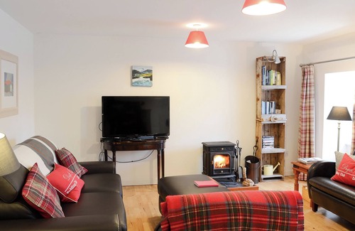 Kitchen area: Electric Cooker, Fridge/Freezer, Dishwasher. Electric radiators, electricity, bed linen, towels, and Wi-Fi included. Travel cot and highchair available. External laundry room with washing machine and tumble dryer (shared with another cottage). The laundry room houses a DVD library and games to borrow. 200-acre natural grounds (shared). Trout fishing on site. Private parking for 2 cars. No smoking. Please note: The property has a natural water supply from a spring, the sea is 50 yards away and there are lochs in the grounds., Enclosed garden with sitting-out area and garden furniture.
