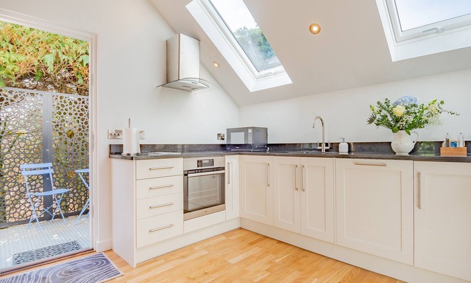 Shower Room: Walk-In Shower, Toilet. Electric central heating, electricity, bed linen, towels and Wi-Fi included. Welcome pack. Raised terrace with bistro set. Bike/equipment store. Private parking for 2 cars. No smoking.. Perfect for summer holidays or winter escapes, this is the ideal location to explore the best of Norfolk with its amazing coastline and the famous Broads. Boasting a wonderful, bright and open plan contemporary living area, which is comfortably furnished, the property nestles beside the owner’s home, yet still retains full privacy.