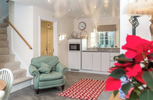Set in the grounds of a beautifully restored rectory with the benefit of its own tiny courtyard - access to a walled garden. This stone-built Pembrokeshire house has been lovingly restored, enhanced by many luxury features.. 2 steps to entrance.