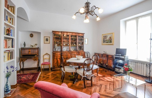 Located in the Ligurian mountains, this vacation apartment welcomes you to the picturesque village of Varese Ligure. It will enchant you with its comfort and authentic ambience. The high-quality and lovingly decorated interior makes an appealing and personal impression. Settle down in one of the beautiful seating areas and spend relaxing hours reading in a stylish atmosphere.
