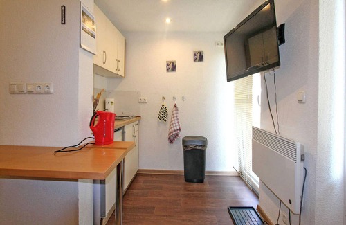 The small one-room holiday apartment, which is well suited for fitters/business travellers, is located in a separate outbuilding on the owner's 1000 sqm residential property within a quiet residential area. It was completely refurbished in 2018 and equipped with a sofa bed, flat-screen TV, radio, kitchenette (electric hob, fridge with freezer compartment, various kitchen appliances), shower/WC and electric heating. There is W-LAN, a furnished outdoor seating area, sun loungers, barbecue facilities, storage space for bicycles and a car park. The total price includes bed linen, towels, water and energy consumption and final cleaning. Pets are not allowed in this property.