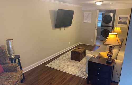 Escape to this beautiful apartment in picturesque Hapeville. This cozy retreat features 1 bedroom with a comfortable queen bed, a lovely living room with a sofa bed, and a modern bathroom with a shower. Guests can enjoy amenities like a washing machine, iron, AC, hair dryer, heating, and WiFi.