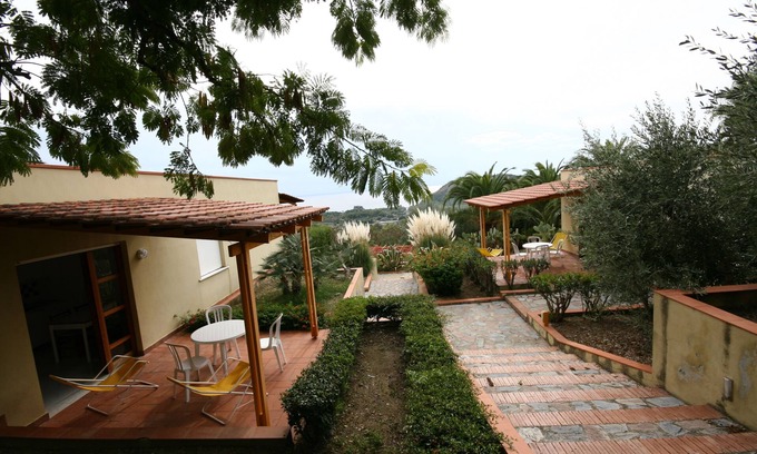 The second group of apartments is made up of small villas, each with 2 or 3 apartments, each with private entrance. It is located in a quiet and panoramic position, surrounded by a rich Mediterranean vegetation. Beautiful view of Cape Palinuro and the Mingardo beach. The decor is modern and nice.