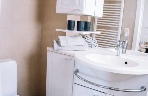 A living room and a desk are featured at this 1-bedroom, 1-bathroom rental. Enjoy the WiFi and TV. Bathroom amenities include a hair dryer, towels, and toilet paper. The kitchen is equipped with a stovetop and a refrigerator, as well as a coffee maker, an electric kettle, and a microwave. Other amenities include bed sheets, an ironing board, heating, and change of towels on request.