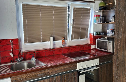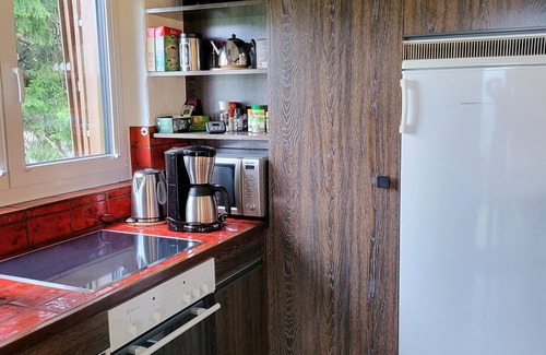 The kitchen has a dishwasher, 3 electric hotplates, hot air oven with grill, microwave, fridge freezer, kettle, coffee maker, iron, hand vacuum cleaner, toaster, mixer, kitchen scale and a complete kitchen equipment. A vacuum cleaner and cleaning liquid are present in the apartment.