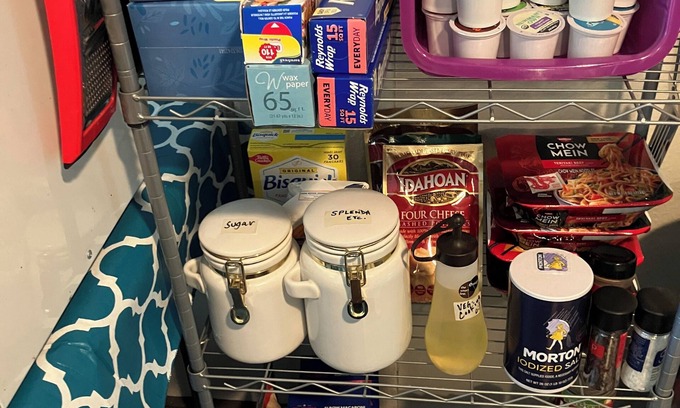 -Sugar, salt, pepper, Splenda, coffee beans and pods for the Keurig, pasta sauce, pasta, bottled water, ketchup, mustard, BBQ sauce, pickles, Jasmine rice etc.