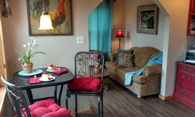 As a traveler, you'll delight in the cottage's thoughtful amenities, including free WiFi and a cozy fireplace to curl up by. Prepare delectable meals in the fully stocked kitchen, equipped with a toaster oven, refrigerator, grill, microwave, coffee maker, and all the necessary dishes and utensils. Enjoy your culinary creations at the dining table, or step outside to the balcony or fire pit to savor the fresh Hill Country air.