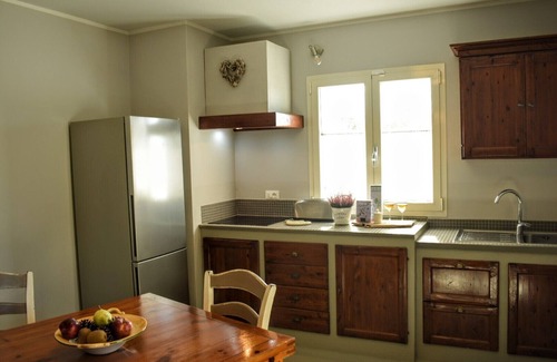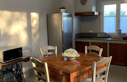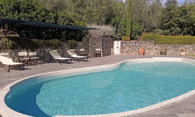 The newly landscaped garden boasts a lovely swimming pool which is surrounded by olive trees. French doors from the kitchen/ living lead to the outdoor patio which is comfortably furnished. There is a nice private BBQ area for the guests to use.