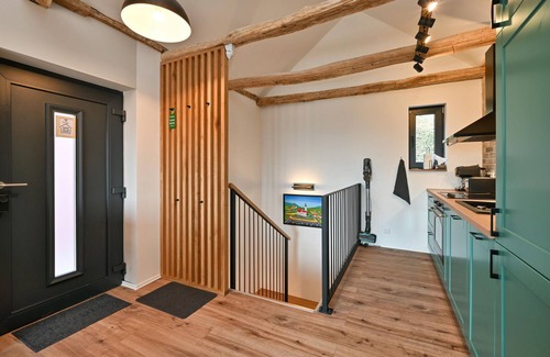 Feel the cosiness of warm wooden floors, tasteful furnishings and neat brick walls. Look forward to cooking evenings together in the colourful kitchen and make yourself comfortable on the cosy sofa for game nights or an exciting series, while rustic ceiling beams and stylish lighting create a special feel-good atmosphere.