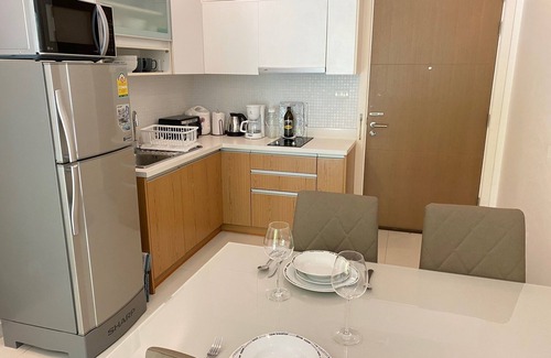 This 49 sqm condo with one bedroom has a living room and a bathroom. It is located on the 2nd floor and has everything you might need for your holiday stay, a fully equipped kitchen, 2 air-conditioners, a 55 '' Smart TV, Wi-Fi, balcony, a sofa bed, a coffee machine, a toaster , electric stoves, a kettle, a rice cooker, a microwave oven, a fridge / freezer, towels, a dining table, hot shower, multiple language TV channels, etc.
