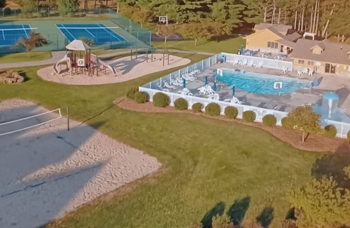 Resort Amenities - Sand beach, heated outdoor pool, hot tub, kids playground, tennis/pickleball and basketball courts, two sand volleyball courts, club house bar/dining, Tiki Bar. Other features include ATV & Snowmobile trails, boat launch and boat rentals located next to the Tiki Bar.