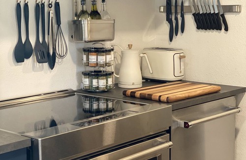 Unwind by the fireplace, sink into a luxurious king bed, or explore the area with complimentary cruiser bikes. Enjoy a keyless private entrance, off-street parking, and access to a fenced dog-friendly garden.