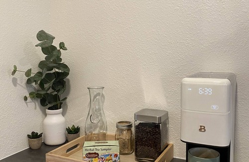 The space includes a dedicated workspace with lightning-fast Wi-Fi (940+ Mbps), a fully stocked kitchen (with everything from chopsticks to a one-touch coffee maker), and a cozy living room with a hideabed, smart TV, books, and board games.