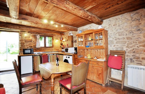 Imagine yourself arriving at this charming stone house in Assignan. With exposed half-timbering and traditional design, the house offers you a unique atmosphere. The cosy interiors are lovingly furnished and radiate a warm, inviting atmosphere. The living room with open fireplace is perfect for your relaxing evenings. Watch a film or play cards. The practically equipped kitchen invites you to conjure up regional delicacies. This holiday home is ideal for a couple or a small family who want to experience an authentic holiday.