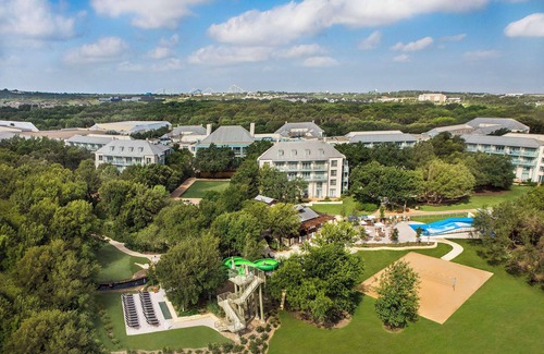 Unwind in style and luxury in the Presidential Suite at the San Antonio Hyatt Regency Hill Country Resort & Spa. At 1,699 square feet, this massive suite includes a well-appointed living space and a convenient kitchenette. Mix up drinks at the wet bar, then relax in the dining area with friends or colleagues. From the private balcony, enjoy the fresh Texas air and views of the hotel's carefully manicured grounds. When it’s time to wash off for the day, choose between a soak in the elevated Jacuzzi tub or a rinse in the gorgeous walk-in marble shower. Then, settle in for a restful evening in the plush, King-size Hyatt Grand Bed. Fun for the entire family can be found at the Hyatt Regency Hill Country Resort and Spa. The mansion type resort on the hill offers beautiful green grass, tree lined walkways, and lovely stone pathways. Complete with a five acre waterpark, golf course, and spa, this historic ranch land is a place of rest, relaxation, and fun. Feel pampered and reinvigorated in the muted tones and wooden décor of each room or suite. Complete with Hyatt Grand Beds the gorgeous views will create excitement from the moment of arrival. Large suites with private dining, bedrooms, and kitchen areas are available. Come for the view, but stay for the hospitality.