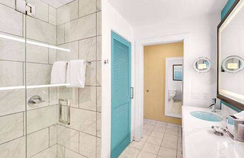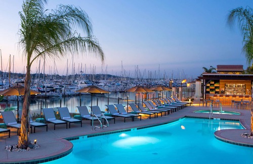 Guests will have a special experience as this suite offers a pool with a view. The air-conditioned suite features 1 bedroom and 1 bathroom with a bath and a shower. This suite has a minibar, flat-screen TV with cable channels, sea views, as well as wine/champagne for guests. The unit offers 2 beds. Located on Shelter Island, 3 miles from San Diego International Airport, Kona Kai Resort offers a private beach, an outdoor pool and an on-site spa. Guest rooms feature private balconies or patios. Rooms provide marina or garden views. They include free Wi-Fi and cable TV along with video games and desks. A gym, beach volleyball court and bicycle rentals are available to Kona Kai Resort and Spa guests. The resort features an outdoor pool and hot tub. Their spa offers massages and a sauna. Kona Kai Resort’s waterfront restaurant Vessel, serves American cuisine and fresh seafood. The resort provides room service and meeting facilities. SeaWorld and the Cruise Ship Terminal are 5 miles from Kona Kai Resort. The resort is 9 miles from the San Diego Zoo. Guests are required to show a photo identification and credit card upon check-in. Please note that all Special Requests are subject to availability and additional charges may apply. This resort charges a mandatory resort fee, due upon arrival upon check-in. This resort fee is required, regardless of utilization. In addition, valet and self-parking fees will be charged upon utilization. Both Parking and Resort Fee pricing are subject to change at the properties discretion.