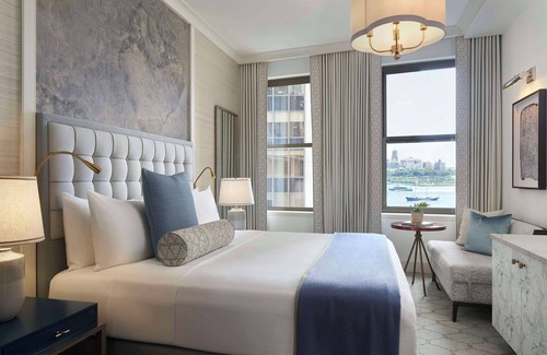 1 King Bed465 sq feet Layout - Bedroom Relax - In-room massage availableInternet - Free WiFi Entertainment - 55-inch Smart TV with premium channels and NetflixFood & Drink - Espresso maker, minibar (fees may apply), electric kettle, and room service (limited hours)Sleep - Tempur-Pedic bed, premium bedding, a down duvet, blackout drapes/curtains, and turndown service Bathroom - Private bathroom, deep soaking bathtub, and separate shower with a rainfall showerheadPractical - Laptop-compatible safe, iron/ironing board, and laptop workspace; free cribs/infant beds available on requestComfort - Climate-controlled air conditioning, daily housekeeping, and heated floor (bathroom)Need to Know - Toothbrush and toothpaste not availableNon-SmokingConnecting/adjoining rooms can be requested, subject to availability With a stay at The Wall Street Hotel in New York (Manhattan), you'll be within a 5-minute drive of One World Trade Center and Charging Bull. This luxury hotel is 3.7 mi (6 km) from Madison Square Garden and 4.9 mi (7.8 km) from Empire State Building.