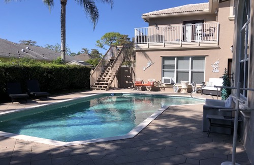 Luxury 1 bedroom suite in a private home with your own private entrance. Separate from the house, queen size bed and sitting area with private bathroom and walk in closet. Comfortable patio overlooking the pool. suite is fully equipped with coffee pot, microwave and refrigerator. minutes to Wellington Equestrian Festival