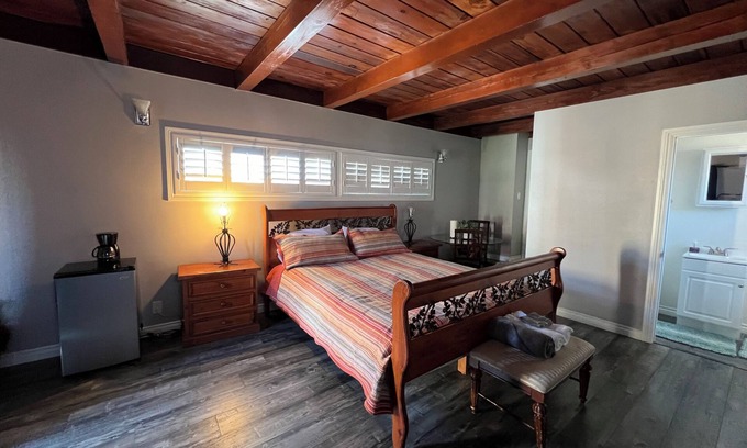 Enjoy the convenience of a fully equipped propane grill right outside in front of your room with all amenities needed to prepare a nice delicious meals and inside your room you will have a mini fridge, microwave, and coffee maker to wake up in the morning with a nice warm cup of coffee! Unwind in the cozy living area, complete with a smart TV for your entertainment. Stay connected with the free WiFi, and take advantage of the desk and chair for any work you need to do.