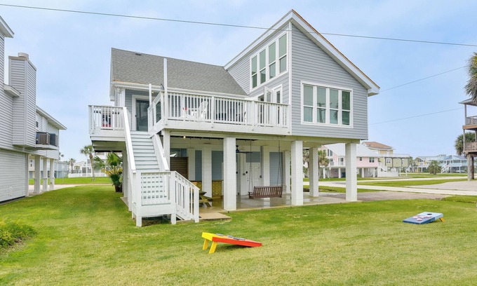 Make lasting memories with your loved ones at this Galveston vacation rental! Located just 5 houses from the beach, this 2-bedroom, 2-bath home with a sleeping loft and an outdoor entertaining space makes it easy to relax between adventures. Ready to venture out? Swim in the Gulf waters, make a splash at Schlitterbahn Waterpark, and take the kids to the Pleasure Pier. After, play cornhole and have a barbecue on the deck!