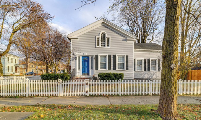 Located on the corner of a block and providing an expansive yard, this 3-bedroom, 2-bath vacation rental allows you to unwind in privacy. Going out? Take advantage of the short walk to charming downtown shops and restaurants. After watching a moving performance at the nearby Croswell Opera House or visiting the Lenawee County Fair, gather loved ones in the living room for a movie night. Your memorable Adrian stay awaits!