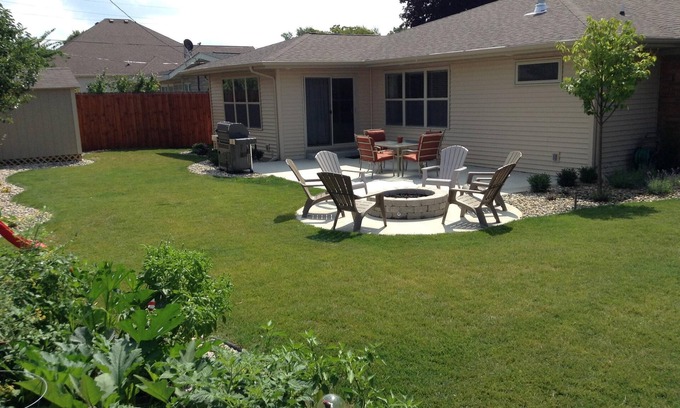 Your stay at this stunning home includes fantastic amenities such as a gourmet kitchen equipped with new appliances, a large dining table for shared meals, and a cozy living room featuring a gas fireplace and big-screen TV. The finished basement boasts a bar and lounge area for relaxation, while the expansive fenced backyard is perfect for outdoor celebrations. Additional features include high-speed internet, all linens and toiletries provided, and ample parking with a 2-car garage plus space for 6 more vehicles. Make your wedding weekend unforgettable by utilizing the outdoor gas grill and fire pit for evening gatherings with loved ones.