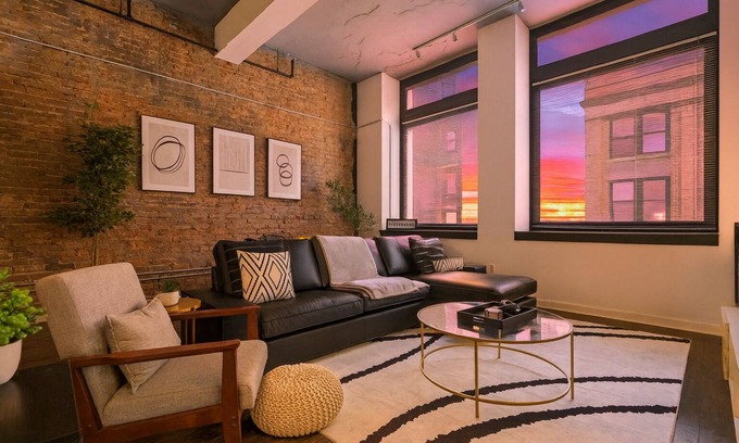 ✅ Bright & Open-Concept Living: High ceilings, exposed brick, and large windows create an airy and inviting atmosphere.