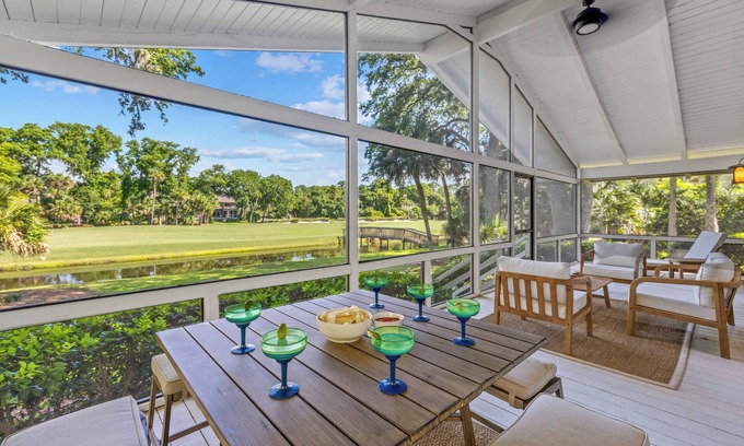 ✹ Relaxing Outdoor Space: Screened-in porch with serene golf course and lagoon views, and access to the Harbour Town Swimming Pool (open seasonally)