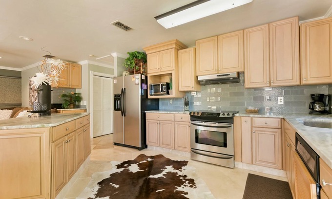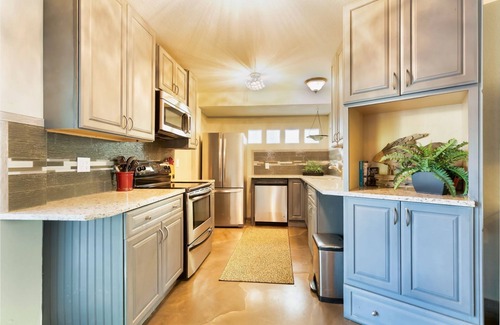While you're here, you can enjoy all the comforts of home and more, including a full-sized refrigerator/freezer and a stovetop, as well as a dishwasher and free WiFi. Other amenities include premium bedding, laundry facilities, towels, and kitchenware and utensils.