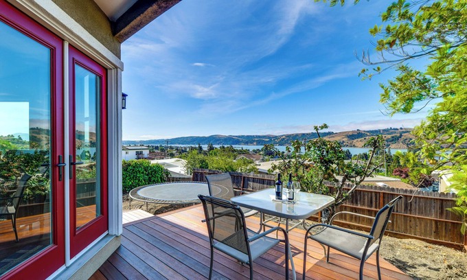 Live like a local at this Benicia vacation rental! With a charming small-town feel and picturesque setting overlooking the Carquinez Strait, this 4-bedroom, 3-bath house offers the perfect base for your next extended Bay Area retreat. When you’re not working from home, check out downtown eateries or explore some of the region’s scenic hiking trails! Then, head back to enjoy a stunning sunset from the furnished deck.