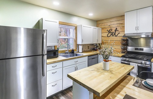 Welcome to 'Bear Cabin,' where the views are scenic, the nights are quiet, and the deer sightings are frequent. Escape the noise of the city and relax remotely, or pack your gear for adventures spent hiking, hunting, fishing, or a mix of all three. Either way, come home to savor the sweet simplicities of this 2-bedroom, 1-bath vacation rental, outfitted with modern comforts like a full kitchen and fireplace.
