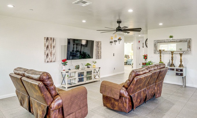 Whether you're looking to explore the best of Bakersfield or want to enjoy some quality time with loved ones, this 4-bedroom, 2-bath vacation rental is the perfect home base! Prepare your favorite meal in the well-stocked kitchen and dine with family in the sunny private yard. Going out? Visit a nearby museum of your choice, attend an exciting concert, or stroll along the Kern River. There's something for everyone!
