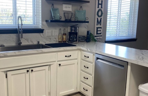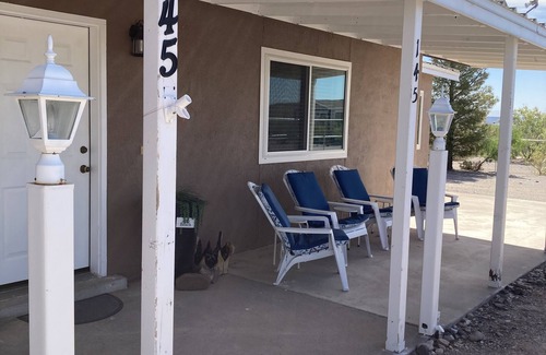 Minutes from Elephant Butte Lake. 3 bedroom home with newly renovated kitchen. Home sleeps 6 comfortably, 9 creatively. Large comfy sectional, large living room with wood burning stove. Large front porch for enjoying morning coffee or evenings by the fire pit. There is nothing like coming off the lake and being able to take a shower, grill, watch a movie or play games with family and friends. Plenty of space to park your lake toys as well as RV cleanout on site.