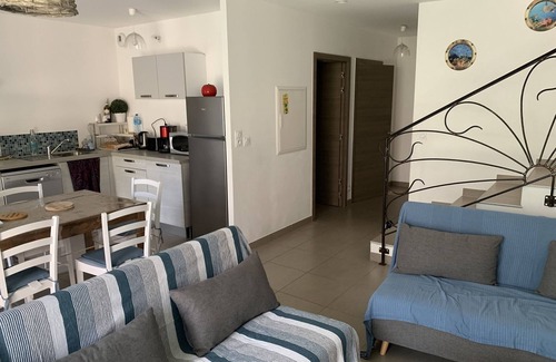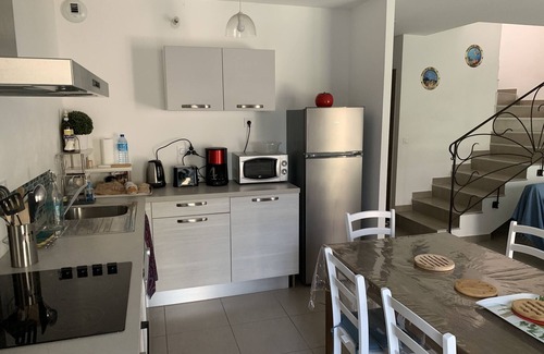 Rental villa duplex, terraced on one side, 80m2, located in a beautiful new residence, which has direct access to the beach of Moriani (56 seconds on foot, I timed ;-)) No road to cross, the path pedestrian goes past the entrance of the house.