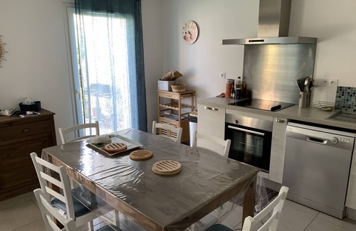 Many shops nearby on foot and by car: new shopping center just opposite, including bakery, supermarket, restaurant, doctor and fishing shop, Casino and Leclerc 5/10 minutes by car, the pretty little tavern port 10 minutes by car with bar restaurant etc ...