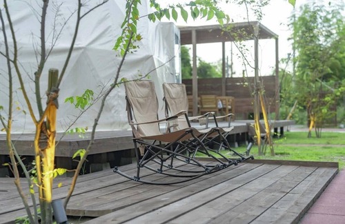 Spend a luxurious time with your loved ones / The spacious dome tent is an extraordinary and stylish space where high ceilings with a sense of openness and sophisticated British furniture are in harmony With a private BBQ deck you can enjoy the outdoors comfortably without worrying about the weather This plan is perfect for those who want to have fun with their family