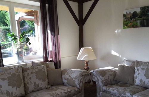 It has its own patio area with hottub (£75 rental fee) seating and bench.
