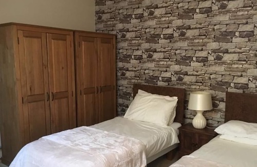 The second bedroom has 3 single beds with bedside cabinets and 2 double wardrobes.