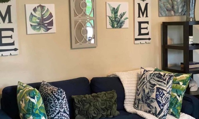 If Chilling in Style was a place, it would be our 1 of a Kind Staycation Destination home. We were intentional about ensuring everything you need for a great stay, is provided. Plenty of seating in our cutely decorated living room area that includes a convertible sleep sofa. Our dining area has a table & 4 chairs and 2 barstools for the counter. Each bedroom features a comfortable Queen bed and TVs with a ton of Streaming Channels on Roku. Complimentary Coffee & Tea and a chilled bottle of Wine are yours for the taking. Fully stocked kitchen with everything you'll need for cooking & dining in. Plenty of towels, tissue and basic living necessities.