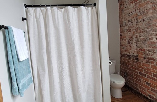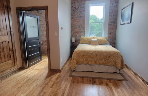 Located in Walnut Cove, this studio is a dream. With a cozy bedroom featuring a comfortable queen bed, a modern bathroom with a refreshing shower, and convenient amenities like WiFi and AC, guests will have everything they need for an excellent stay. The gorgeous interior design adds a touch of luxury to this perfect retreat. With the original exposed brick and office door that is now to the bathroom, this property brings history to life! We hope you'll enjoy your stay at our newly remodeled studio.