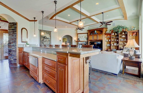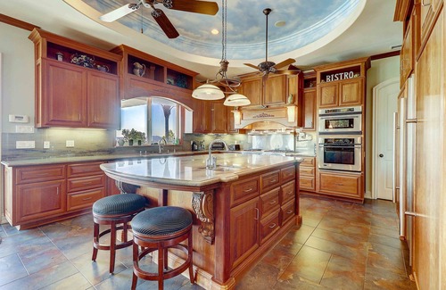 1 STORY EXECUTIVE ARTISTIC MASTERPIECE with PRISTINE POOL & 6 car GAME GARAGE. PANORAMIC DISTANT VIEWS, VERY PEACEFUL AND QUIET. FABULOUS LOCATION! SLEEPS UP TO 12. This is NOT a party house. I designed and built this unique home with family gatherings in mind and it's perfect for just that. No Smoking INSIDE OR OUTSIDE. Quiet time is 10pm. Located on a private culdesac with the homes laid out so privacy is perfectly achieved. A very quiet neighborhood so relaxation is unavoidable. Book your private getaway or family reunion.