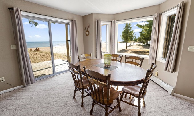 #1 Thomas' Parkside Cottages, 4BR Lake Huron Beachfront w/Balcony views has 4 Bedrooms , 3 Bathrooms, and max occupancy of 12 people. The minimum rental for this property is 1 nights, but this can change depending on the season you plan on staying. Previous guests have given good rated it, and VRBO labeled it a top-rated House because of the excellent services rendered by the owner or manager of this House, and has consistently provided great experiences for their guests. Most families or guests that use it recommend it to their friends and some of them are repeat guests. House has a friendly neighborhood, and the Oscoda has interesting places to visit. If you want to learn more about the House in Oscoda, such as places to visit and things to do nearby, you can check below to learn more.