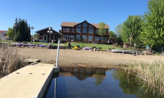 This gorgeous, amazing 10 bedroom home is located in southern Minnesota, near Mankato, one hour from the US bank Stadium, Mall of America and the MSP Airport. It has 150 feet of sandy beach on crystal clear spring fed Lake Francis, a 900 acre, fantastic fishing lake! A 24 foot Crest pontoon with 110 hsp motor is available to rent for $1199.00 per week. Enjoy catching Walleye, Sunfish, Crappie, Bass and Northern. Fishing polls are provided. The Lake is also a great recreational lake! Enjoy swimming, boating, floating (provided), tubing(provided) and more. This mansion has 8 bedrooms in the house a murphy bed in the exercise room (a legal bedroom), and one more in the cabana or guest house sleeping 21 In jthe summer. After September the guest house is winterized and not available. In the winter It sleeps 18. The home has a total of 7 bathrooms. The fireplace is hand made and is the focal point of the great room. It reaches 36 feet tall to the top of the beamed cathedral ceilings. The other side of the great room boasts a wall of windows facing beautiful Lake Francis. Spectacular views can be seen from them! This room has a 32 inch flat screen TV with surround sound. Also a closet full of board games. One of the porches holds a full size shuffle board game. The man cave has a flat screen curve TV for your viewing pleasure and a large U shaped couch. The downstairs master bedroom has a queen hand carved bear bed with it's own private half bath and a 42 inch flat screen TV. Across the hall is a very large master bath with double sinks and a triangular corner tub. The dining room contains a beautiful oak pool table and a touch screen game. The very large modern kitchen has stainless steel appliances including a double oven, microwave, refrigerator, dish washer, and built in stove. Available in the pantry are many small appliances including a mixer, air fryer, crock pots, George Foreman, blender, air popper, Pizza Pizzazz, Mr Coffee, deep fryer, ice cream maker and more. The center of the kitchen is a large granite island with 10 bar stools surrounding it. The main floor laundry is complete with washer, dyer, iron, and iron board. There is an extra full size refrigerator and freezer in the hall way leading to the basement. The beautiful finished basement holds a variety of surprises. The granite bar seats 8. It has a sink, refrigerator, 52 inch flat screen TV, and microwave. The room has air hockey and foosball. In the hall way sits a variety of kids things such as a high chair, swings, jumpers, walker, booster seat, strollers, and riding toys. The basement play room has so many toys they can't all be listed. There is a stage for the band instruments, a stage for modeling the wide selection of stylish dresses and jewelry, Tommy the Train, a Lego block table, a fully equipped desk, and a play house with shopping area, work bench, equipped kitchen, and a loft with slide. The next room in the basement is a special treat for the children. Its a ball room with tunnels, jumping trampolines, basketball hoop and many many brightly colored balls. The next room in the basement is for the adults. It's a complete exercise workout room. It includes a treadmill, work out bench, crunch chair, elliptical, and free weights. This room also has a queen size murphy bed and doubles as another legal bedroom. The basement also has one of the 7 bathrooms. Going up the open wood staircase to the upper level the first room you reach is the master bedroom with a king size Cleopatra style bed. The balcony has spectacular views of the yard and Lake Francis. The attaching full master bath has double sinks, a makeup settee and a large Jacuzzi tub. Down the hall from there is the blue room which has a wood carved king bed with an attaching full bath and it's own balcony. Just further down the hall way is a another up north themed king bedroom with another breath taking view of Lake Francis off it's balcony and an attaching full bathroom. Next to that bedroom is a smaller bedroom with a queen bed. A whole new world is at the end of the hall in the west wing. A second living room or great room with three bedrooms adjoining it. One is a king with bunk beds.. The second is a queen . The third is a king bed. The cabana or guest house is a full cabin with a kitchen, full bath, and bedroom with a double bottom bunk and a top single bunk. The yard is a wonderful game place. Available games are Bean Bags(Corn Hole), Polish Golf, Hammer Schlogan, Crockett, Boccie Ball and Ring Toss. Near by snowmobile trails make this a winter haven. Ice fishing is fantastic on Lake Francis! There are many winter activities around the area such as Ice fishing, snowmobiling, ice skating, cross country skiing and sledding. Down hill skiing is 20 miles away at Mount Kato. During the summer the lake offers fishing, skiing, tubing, boating, swimming and much more. The state bicycle trail goes right through town and two adult bikes and four children's are furnished. There is a canoe and 2 kayaks available for use. Remember to wear your life jackets. A playground owned by the lake association is next door. Relax on one of the 4 decks. Grill on the gas or charcoal smoker grill. Fry up your fresh fish in the outdoor or indoor deep fryers. Have a campfire and roast some marshmallows at the fire pit. Wood is provided. Relax in the screen porch and enjoy the propane fire pit. The small town of Elysian is one mile away. It boast of 5 bars and 3 restaurants. There are two gas stations with mini marts also in town. There is a 8-12 person 24 foot Crest pontoon with a 90 horse Evinrude available for an additional $850. It includes a full tank of gas, life jackets, and lake floaties.