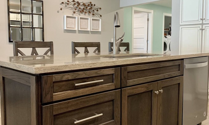 Charming Lakefront cottage with a huge NEW kitchen, living area & master suite offering over 2000 square foot of open concept living. Located directly on the lake with no roads to cross. The family area has comfy leather reclining furniture and a “lift chair” to relax and watch a movie after a day on the lake. The views of the lake and sunsets each evening are absolutely stunning. This home is all on one level and there is a concrete ramp to the patio in the back giving wheelchair access to this home plus a new concrete sidewalk to the pier. The master bathroom is equipped with grab bars and shower seat and accessible vanity.
