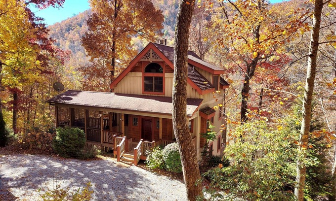 Adventure awaits for romantics or remote workers. Our Treehouse is located 10 minutes north of downtown Cashiers, situated near Lake Glenville and Nantahala National Park. You will be tucked away among the treetops at 3400 ft. in this 3 level 2B/2.5B custom-built home, perched on the side of a hill. Your host invites you to come to the mountains and slow down from your normal busy routine. Guests will enjoy the fine touches and features of a high-end stay, without the high-end price tag :) The top floor encompasses an entire primary suite complete with king bed, jacuzzi tub, vaulted ceilings, fireplace and spacious en suite bath. Our guests will enjoy laundry, central AC, Starlink satellite internet, and a fully equipped kitchen complete with gas cooking. The mountain view will greet you each morning as you step out onto 1 of our 4 beautiful porches and enjoy your morning cup of coffee. This beautiful space is a no pet/no smoking property.