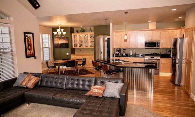 Come let your hair down in this modern upscale HOME AWAY FROM HOME. Whether you're visiting for a quick work trip or looking for a calm reprieve from the grind, this home has it all. Enjoy the open floor plan, fully equipped kitchen, hot tub, and comfortable outdoor lounge/BBQ space.