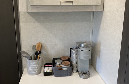 Large king bed. .This is not a RV park! It is private.Has a large shared deck over looking the intercoastal waterway. We have a private boat ramp at the end of the road and also beach access at the other end of our road.You can drive your boat up to the camper. Just a golf cart ride to the beach. Watch the beautiful sunset over the water!! Enjoy all of the wildlife like pelicans and all the beautiful marsh birds. This camper is a brand NEW 2022. It also has double refrigerators. This is not a RV park.