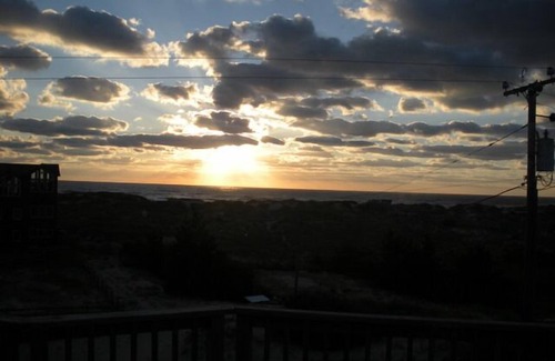 We are less than a two-minute walk over the dune to the beach, approx. 100 yds using our easement. Enjoy spectacular sunrises and sunsets from our great room. Great ocean views throughout the house.