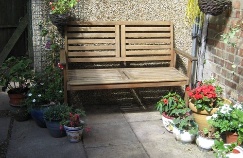 Cosy rustic one bedroom cottage in the heart of St Albans conservation area near to Abbey. Will consider rolling monthly AST by negotiation. Please contact if interested. Ideal for singles or couples, described as 'peaceful haven'. Sleeps up to four adults with a double and sofa bed, plus extra mattress bed for one child. Cosy bedroom with plenty of storage space, bathroom with bath/shower, small lobby, front room with wicker furnishings, widescreen TV, sofa. Kitchen overlooks pretty private garden with a bench to sit in the sun afternoons and evenings. Plenty of arty paintings, ornaments and tuneful bell peals from the Abbey in the evenings to please you. Few doors from friendly local football addicts pub, close to an array of various restaurants, pubs, museums, Verulamium Park, many events and all local amenities to take your pick. Near to centre with wide variety of shops, arty chic boutiques, antiques and weekly Wednesday market.